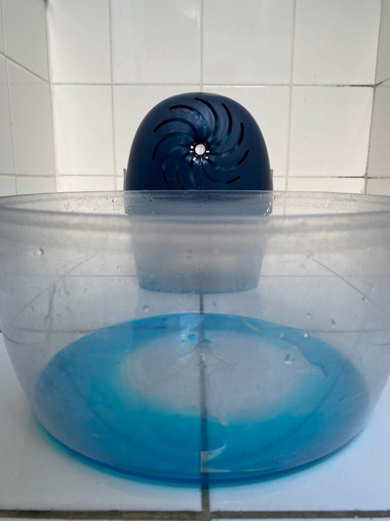 A noter: le déshumidificateur s’est mis en veille et le réservoir était plein avant la fin des 24h. La capacité de « récolte » d’eau de l’appareil est donc en réalité bien supérieure à 1,5L.