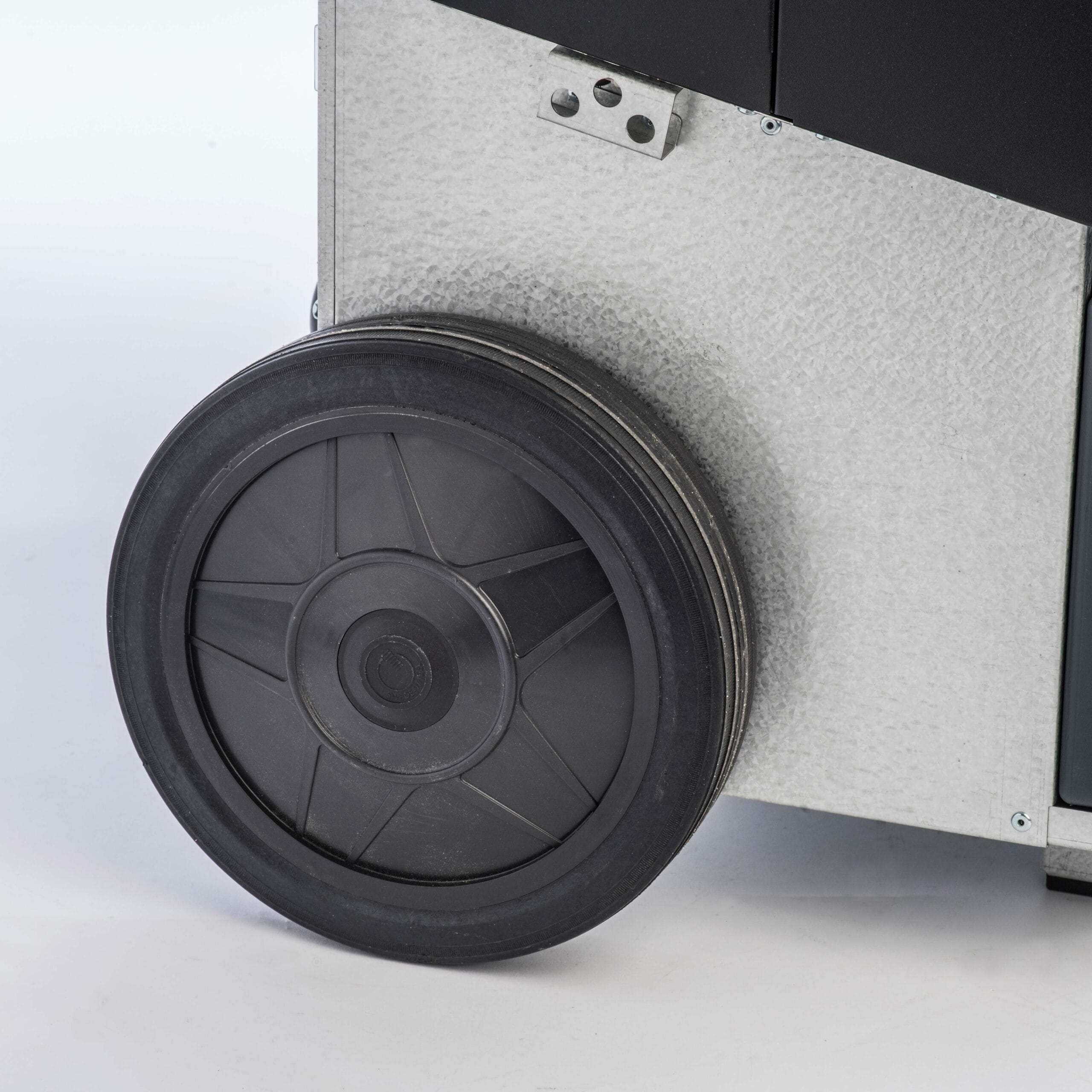 Den stora vattenbehållaren samt möjlighet att koppla till en kondensvattenpump gör WCD8HG Pro till en flexibel lösning för stora arbetsytor. De robusta hjulen och det uppfällbara handtaget gör den enkel att transportera mellan olika utrymmen, vilket gör den perfekt även för uthyrning eller användning på arbetsplatser med skiftande behov.